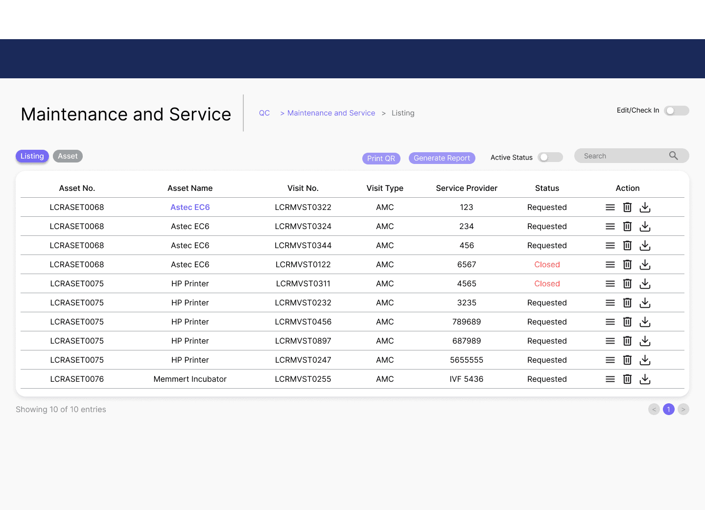Redesigning of quality control section, landing page & dashboard of a data monitoring and quality control software.